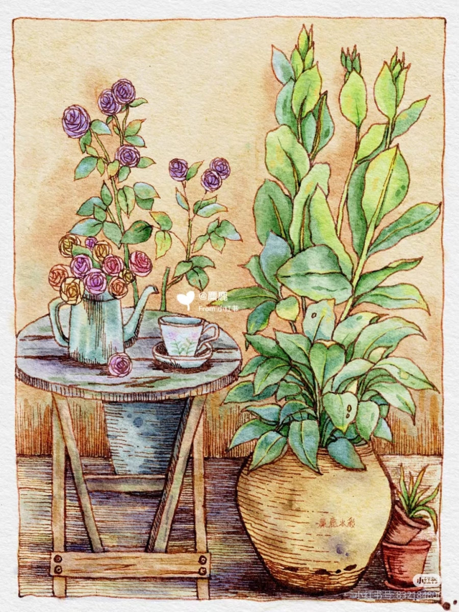 彩铅、水彩、水粉画