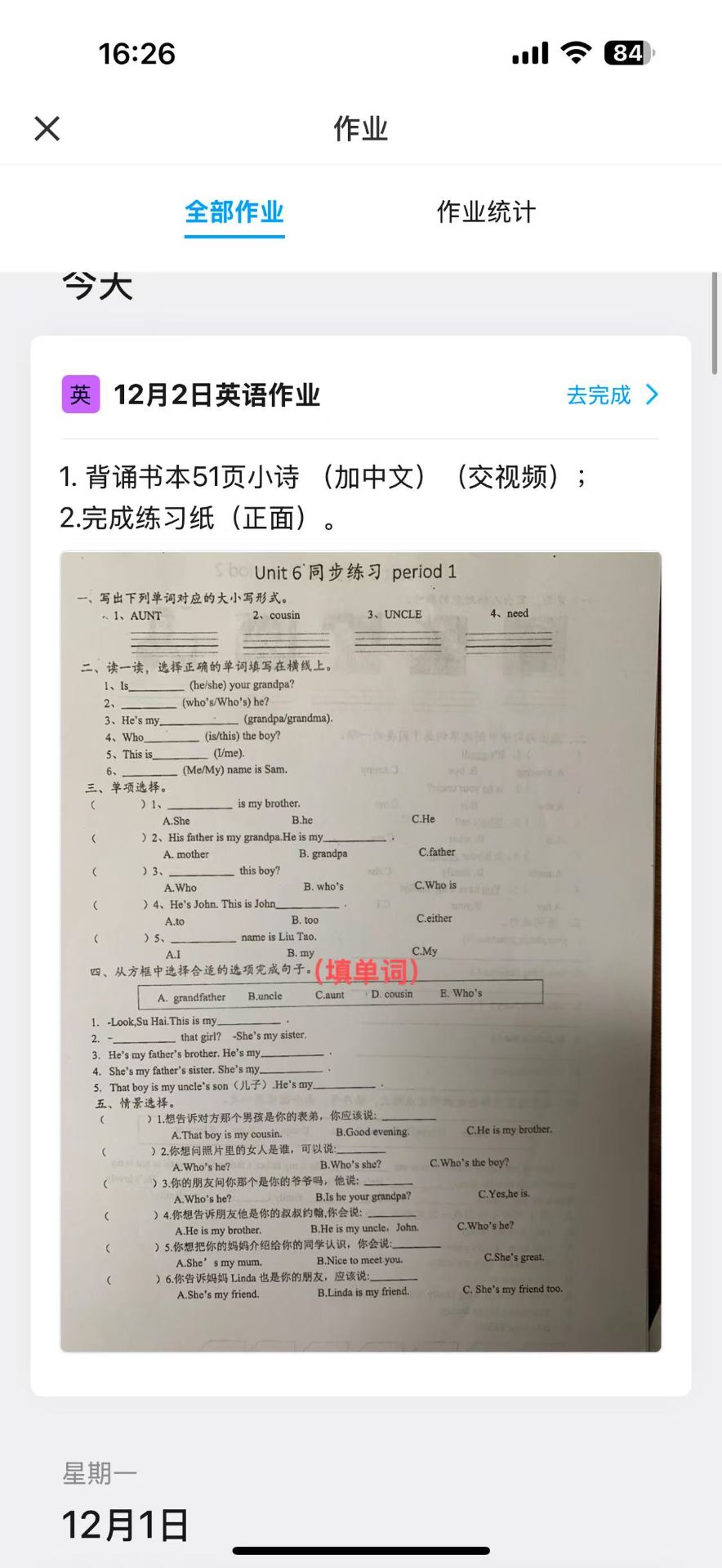 | 学生 | 作业 |